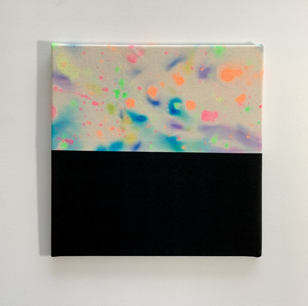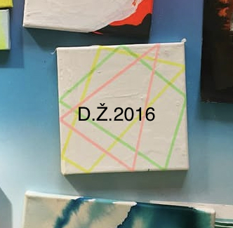 Technika fosforom, je len pokračovaním a zintenzívnením tématiky svetla a tmy, kde dochádza k istej interaktivite, kde sa pozorovateľ môže zapojiť nasvietením fosforových plôch svetlom napr. aj svetlom z mobilu- kreslením svetlom.. Fosfor používam pri znázorňovaní geometrických tvarov, no skúsila som aj inú, voľnejšiu techniku rozlievania fosforových farieb, no pri takejto technike nie všetky farby svietia dosť intenzívne, ale možno pod dlhodobejším nasvietením áno…Túto techniku ešte mám v pláne rozvinúť. Držím sa kontrastu, aby biele časti vynikli i za bieleho dňa v čiernom pozadí…Fosfor som začala používať v lete 2015, pri maľbe, aj na bavlnené tašky. instagram