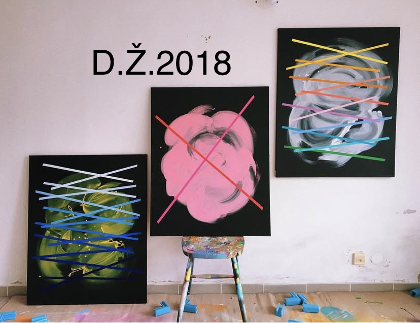Kontrast je v mojej tvorbe dosť významný… Používam ho pri odlišovaní povrchov malieb, farieb, motívov a techník, so snahou zdôrazniť istú ohraničenosť. Aplikujem geometrické prvky inšpirované grafikou… Práce sú prevažne maľované akrylom, sprejom, a ma to nejakým prirodzeným spôsobom vedie ku grafike a tlači…