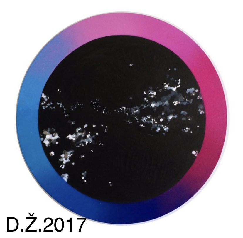 Ide skôr o zvýraznenie významu kruhu, aj ako planéty, dokonalosť, jednoduchosť tvaru…kde farba a povrch komunikujú…štruktúra zvýrazňuje povrchy mesiacov a planét, farbou sa niekedy snažím priblížiť k realnému zobrazeniu, ale v ostatnej dobe ma baví kombinovať žiarivejšie farby, ktoré už nesúvisia so skutočnou farebnosťou planét, kde zachádzam do tvorby grafickým, abstraktným pohľadom, sledujem vzťah, kombináciu farieb, podľa môjho cítenia a vkusu, s cieľom, práve jednoduchosťou tvarov a volením dvoch-troch farieb, pozastavovať, zjednodušovať, nezaťažovať, rozveseľovať myseľ. Vyjadrujem istý postoj minimalizmu zároveň dominancie (farieb a tvarov).