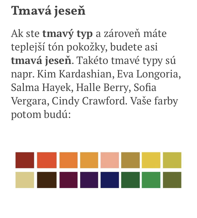 Článok o farebnej typológií podľa tónu pokožky https://www.stylistka.sk/farebna-typologia-alebo-ake-farby-vam-pristanu/