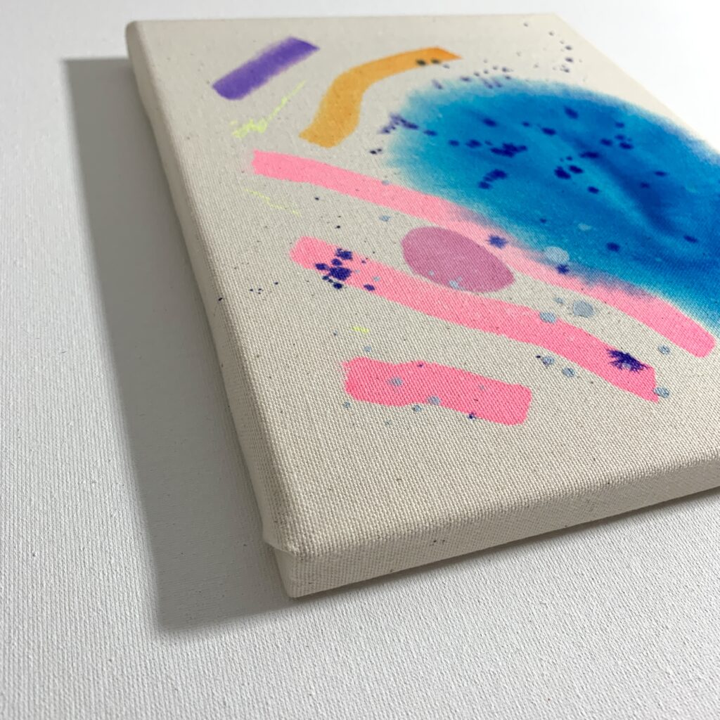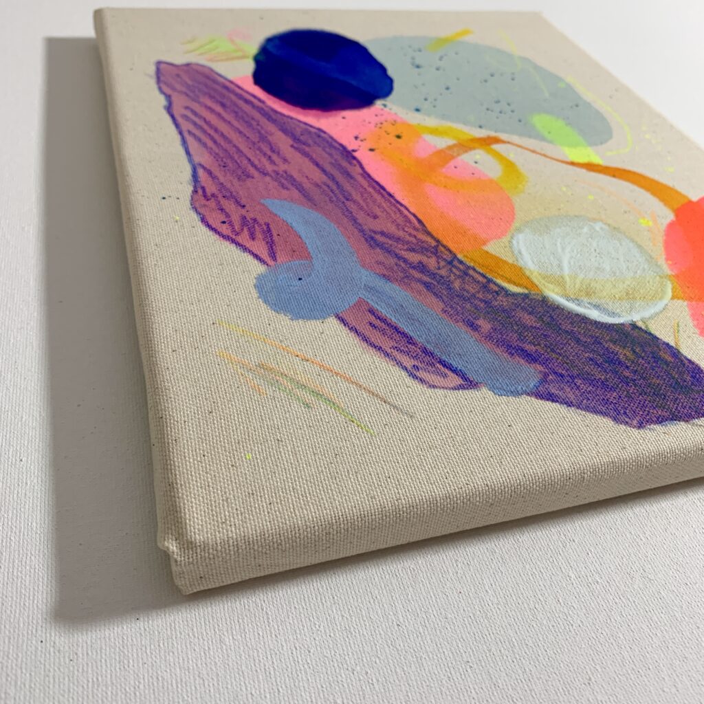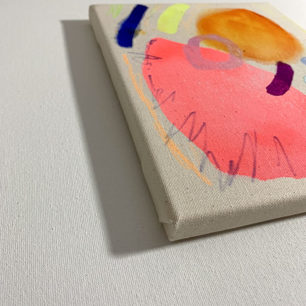 ABSTRACT – Watercolor, acrylic, color pencil, spray on canvas 20x25x1,5cm, 10/2025 – AVAILABLE