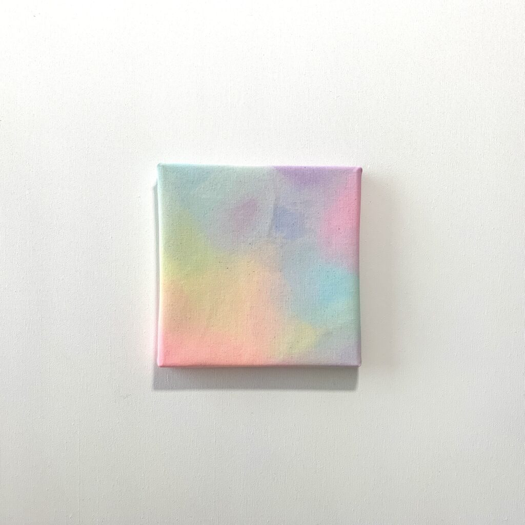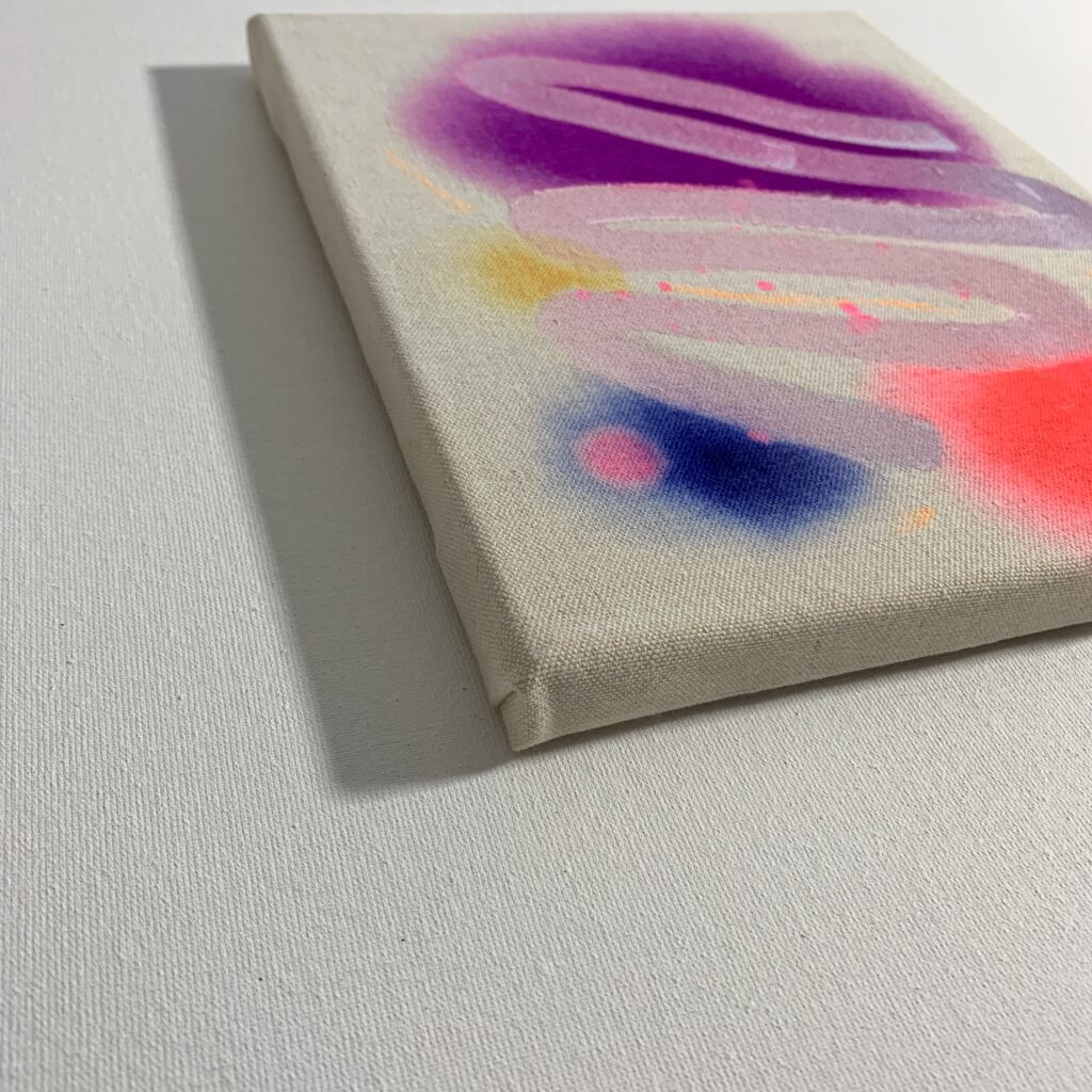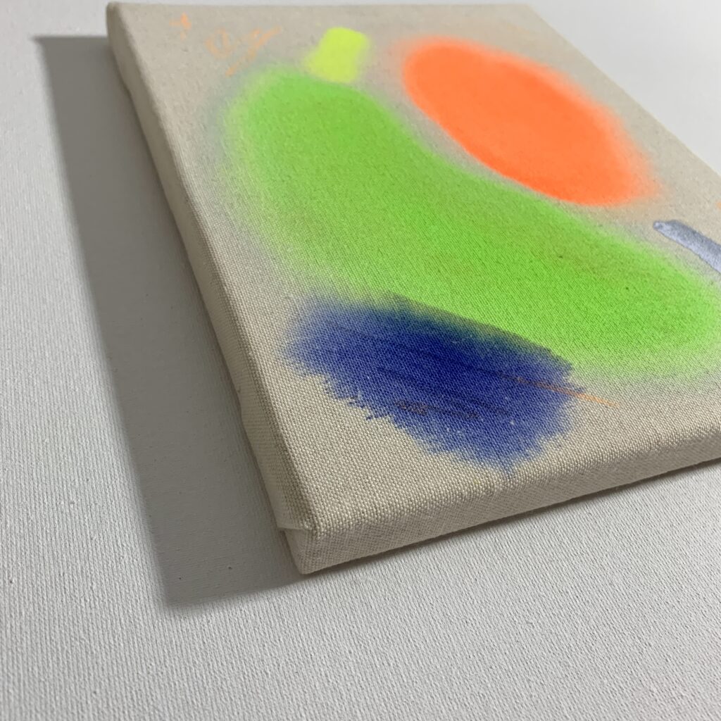 ABSTRACT – Watercolor, acrylic, color pencil, spray on canvas 20x25x1,5cm, 10/2025 – AVAILABLE