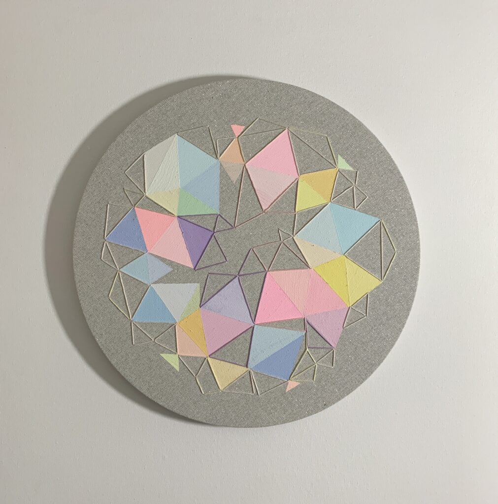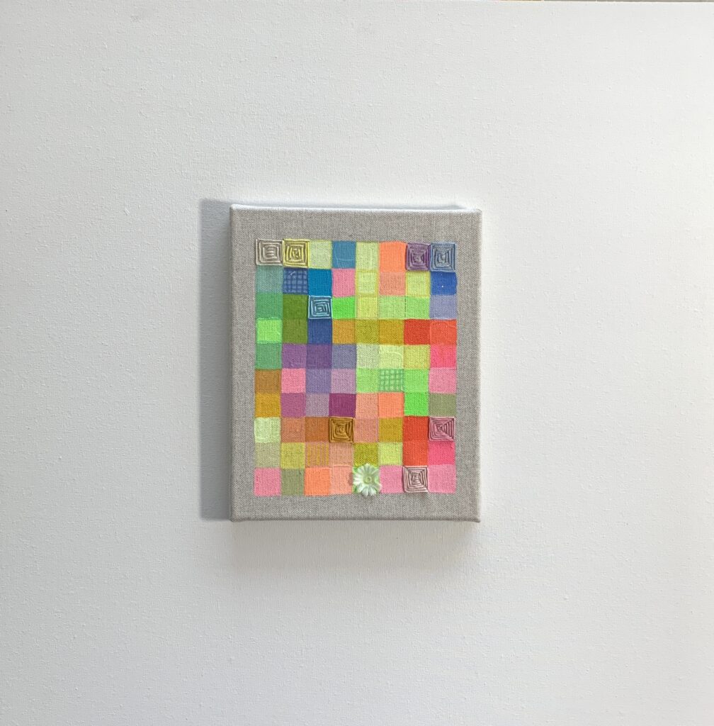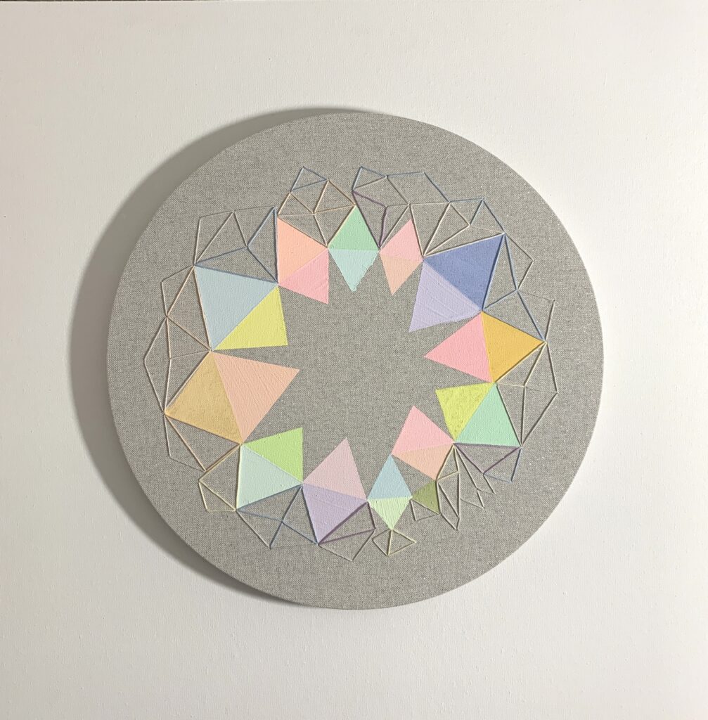 Having embroidery in painting comes from my handmade skills, from fashion. I can sew, embroider, knit, crochet hats, sweaters since I was a child, for myself, for dolls, with my grandmother at her friend’s dressmaker, whom we used to go to. Therefore, embroidery transferred to paintings, today’s time, contemporary modern language.