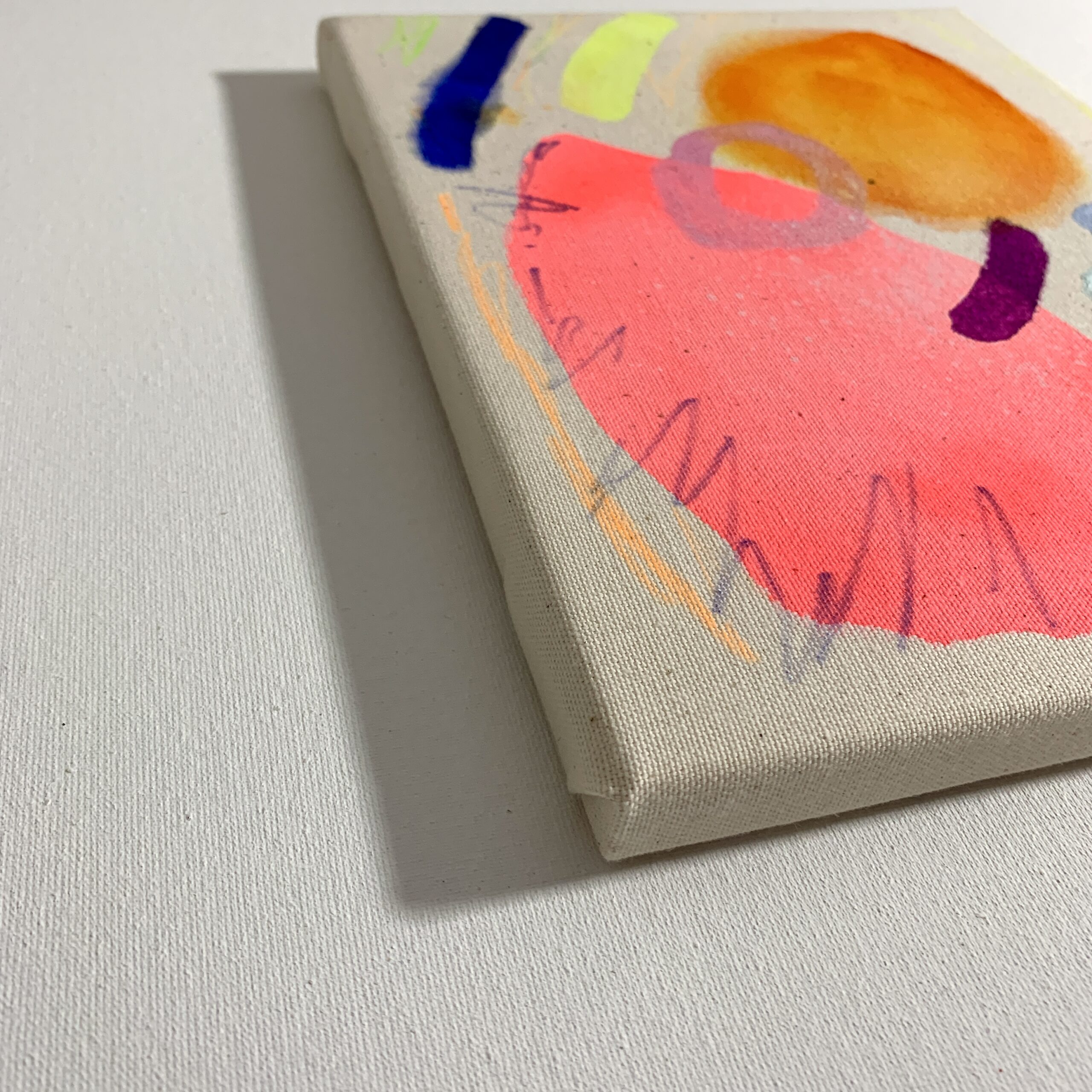 Voľná farebná abstrakcia akvarelových farieb na plátne. Intuitívna maľba doplnená akrylovými farbami, glitrami, farbičkami, sprejmi, fixkami. Dostupné vo viacerých prevedeniach v sekcii “ Portfólio” v kategórii “ Nature canvas”. Na predaji, cene sa dá dohodnúť aj e-mailovou komunikáciou. Rozmery, rok: 20x25x1,5cm/2025