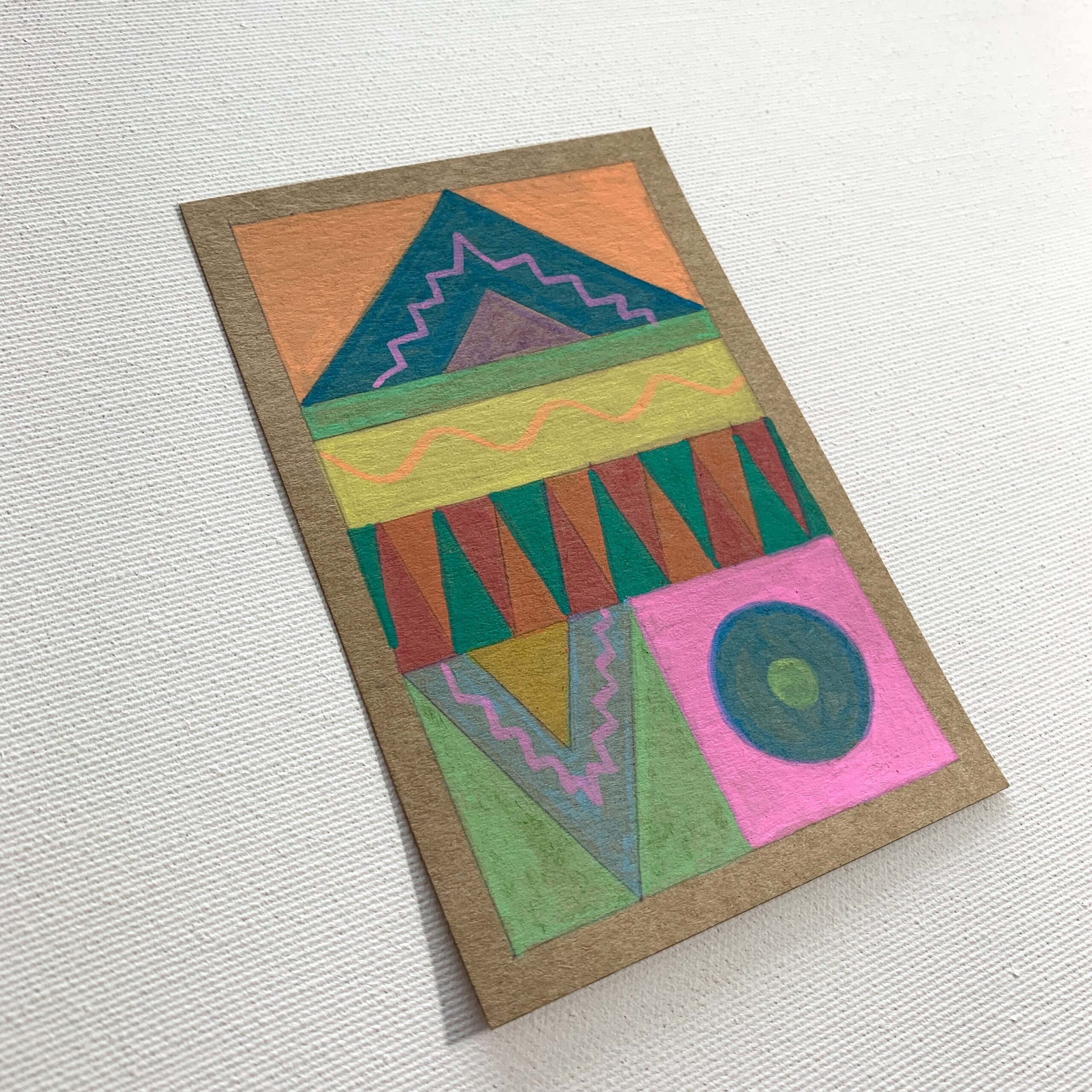 Postcard. Acrylic on A6/250gsm paper. Geometry, colorful playfulness, intuitive choice of colors, according to color taste and flavor. Geometric designs were created intuitively and by inspiration, with a pencil. Postcards were created as a coloring book, by filling in the areas with acrylic markers with a pointed tip, as a meditation, where time and peace are needed for such an activity. Available in several designs in the “Portfolio” section in the “Cards” category. The price can also be agreed upon by email communication. The postcard is an original piece painted by hand. Packaged in a custom-made cellophane bag with a colored envelope.